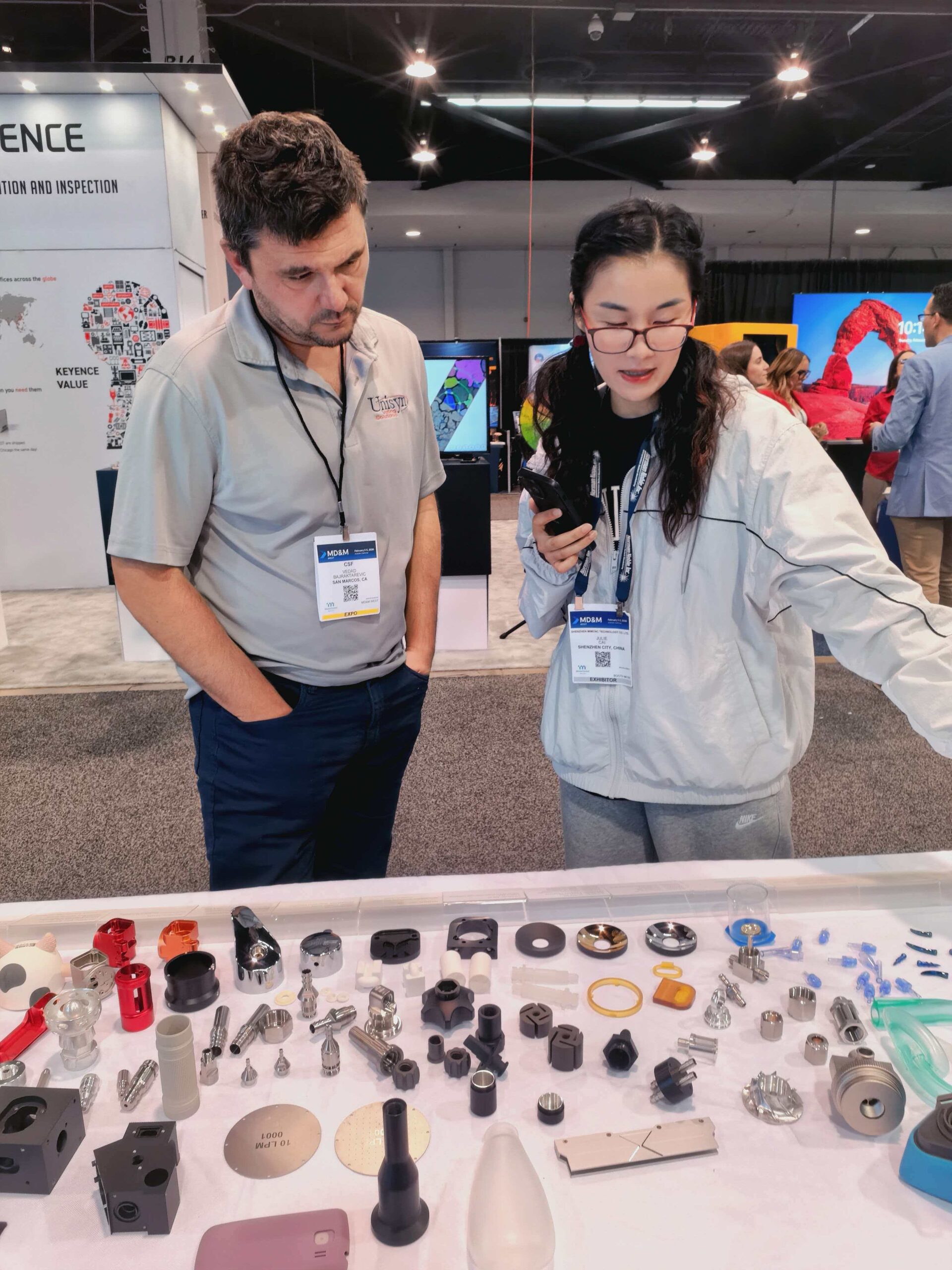 From February 6th to 8th, 2024, MIM attended the MD&M show at the Anaheim Convention Center. Many customers visited our booth to engage in discussions, meetings, and even take pictures with us. We are grateful for the opportunity to connect with our valued clients during this event.Many customers like our cnc parts, Optical mirror parts with Inorganic optical black anodizing.